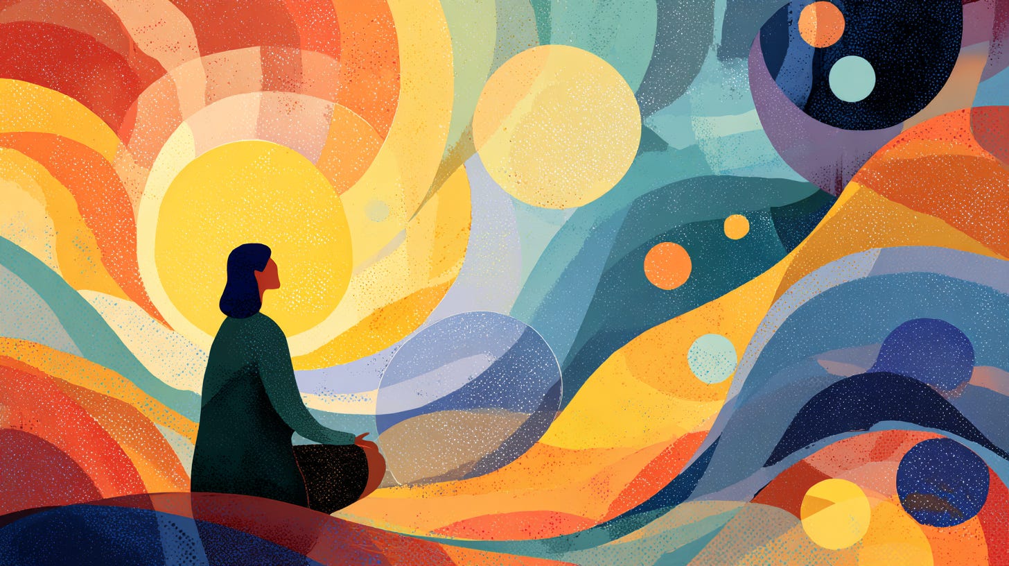 Through simple guidance—often involving breath, sound, and gentle attention—you are supported in returning to yourself before or after engaging the wider world of meaning, story, and reflection.